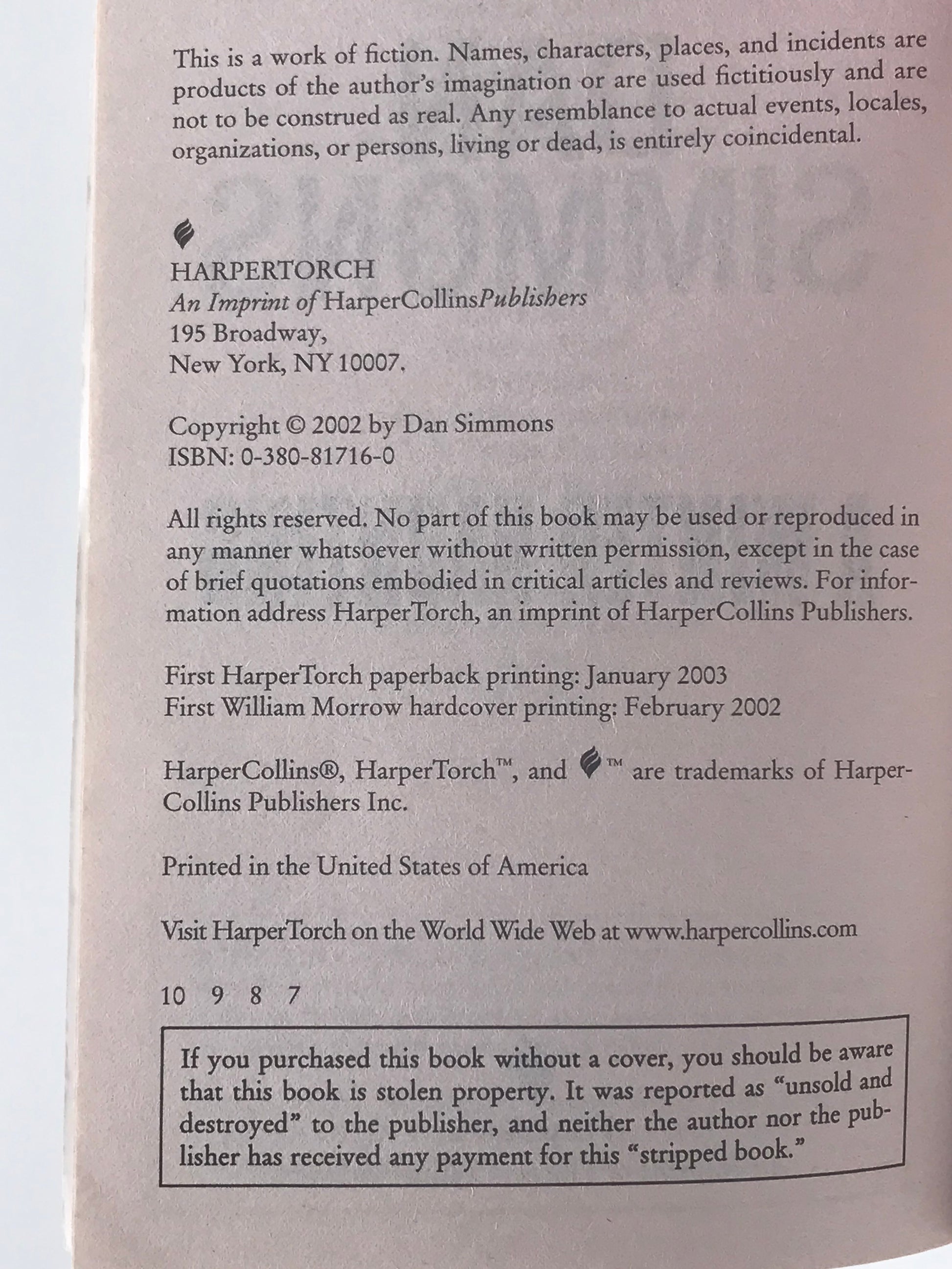 Most paperbacks will have the copyright page pictured.