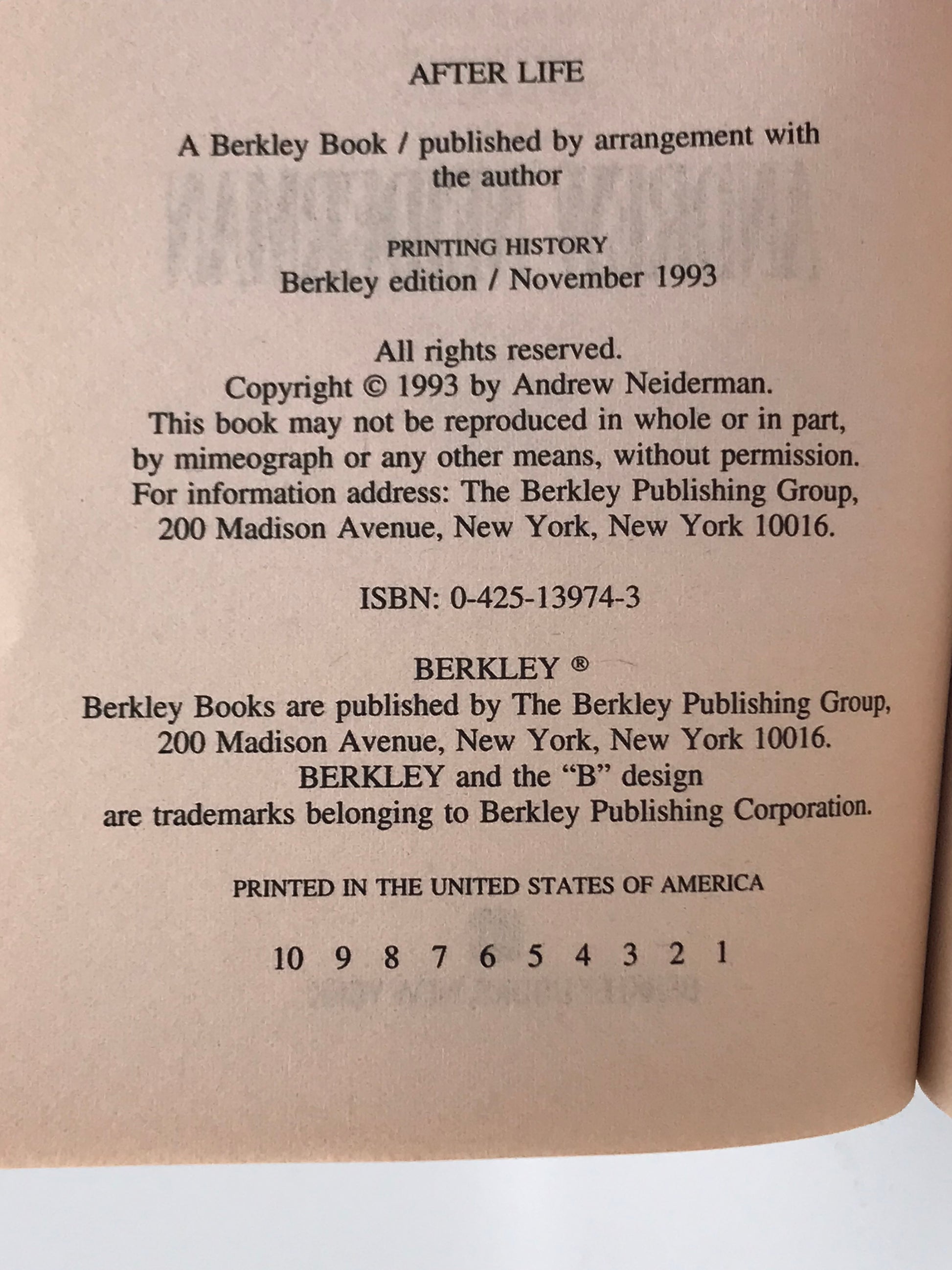 After Life BERKLEY Paperback Andrew Neiderman H02