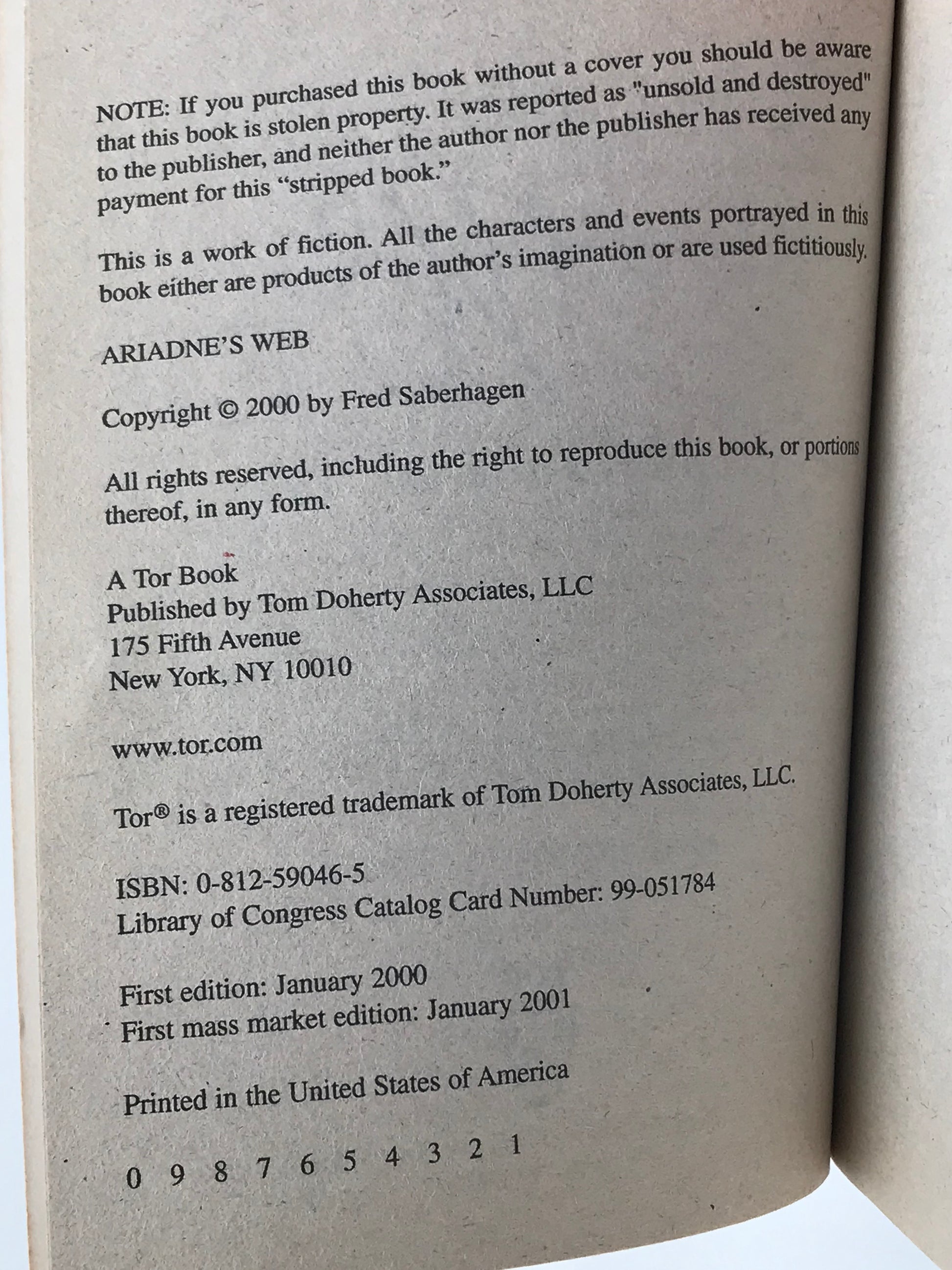 Ariadne's Web TOR Paperback Fred Saberhagen SF02