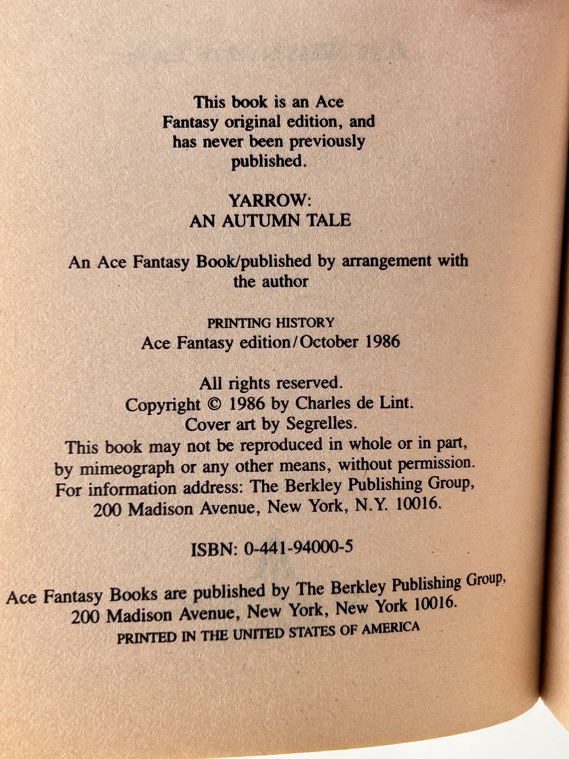 Yarrow ACE Paperback Charles de Lint SF04