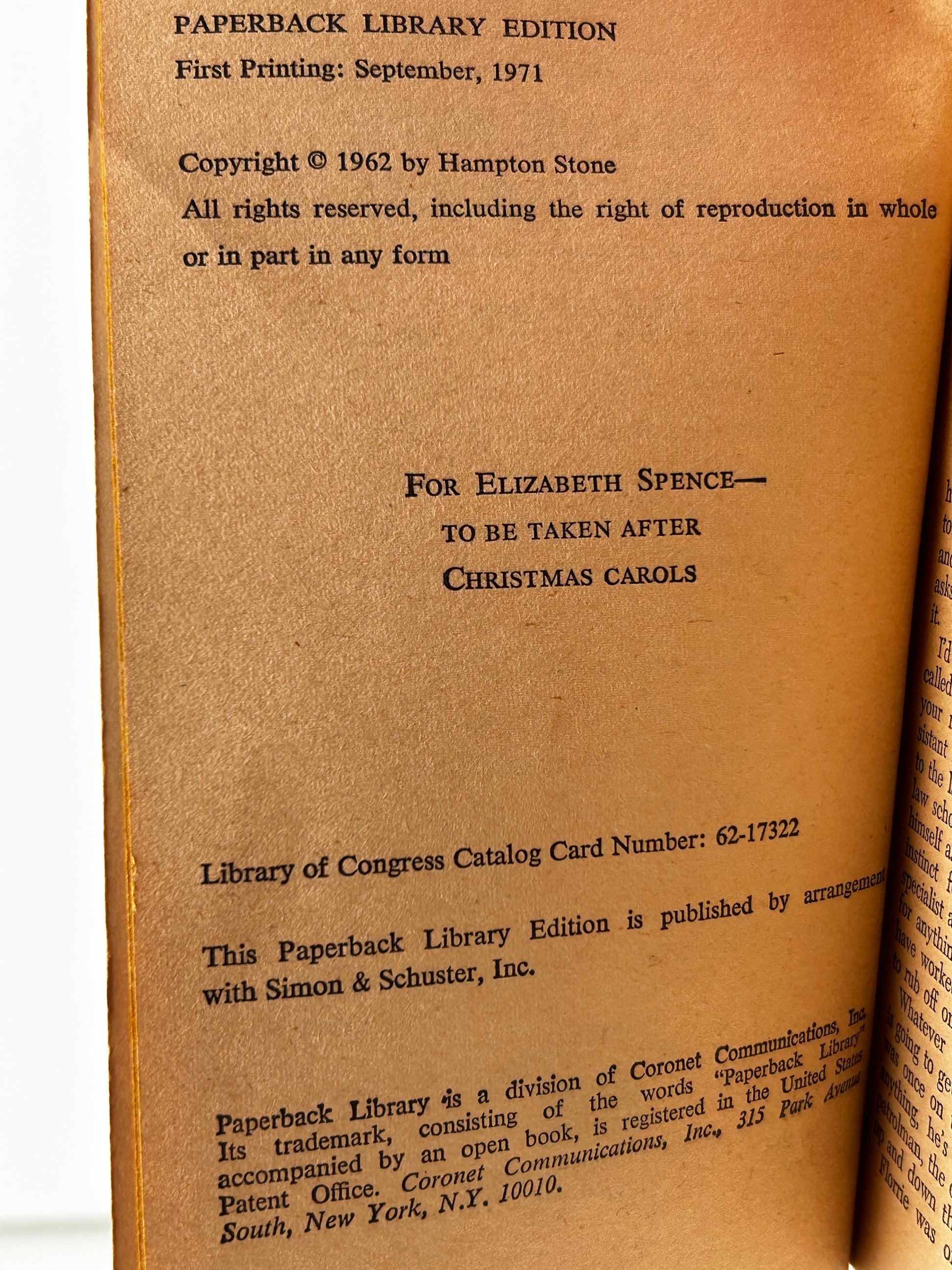 Most paperbacks will have the copyright page pictured.