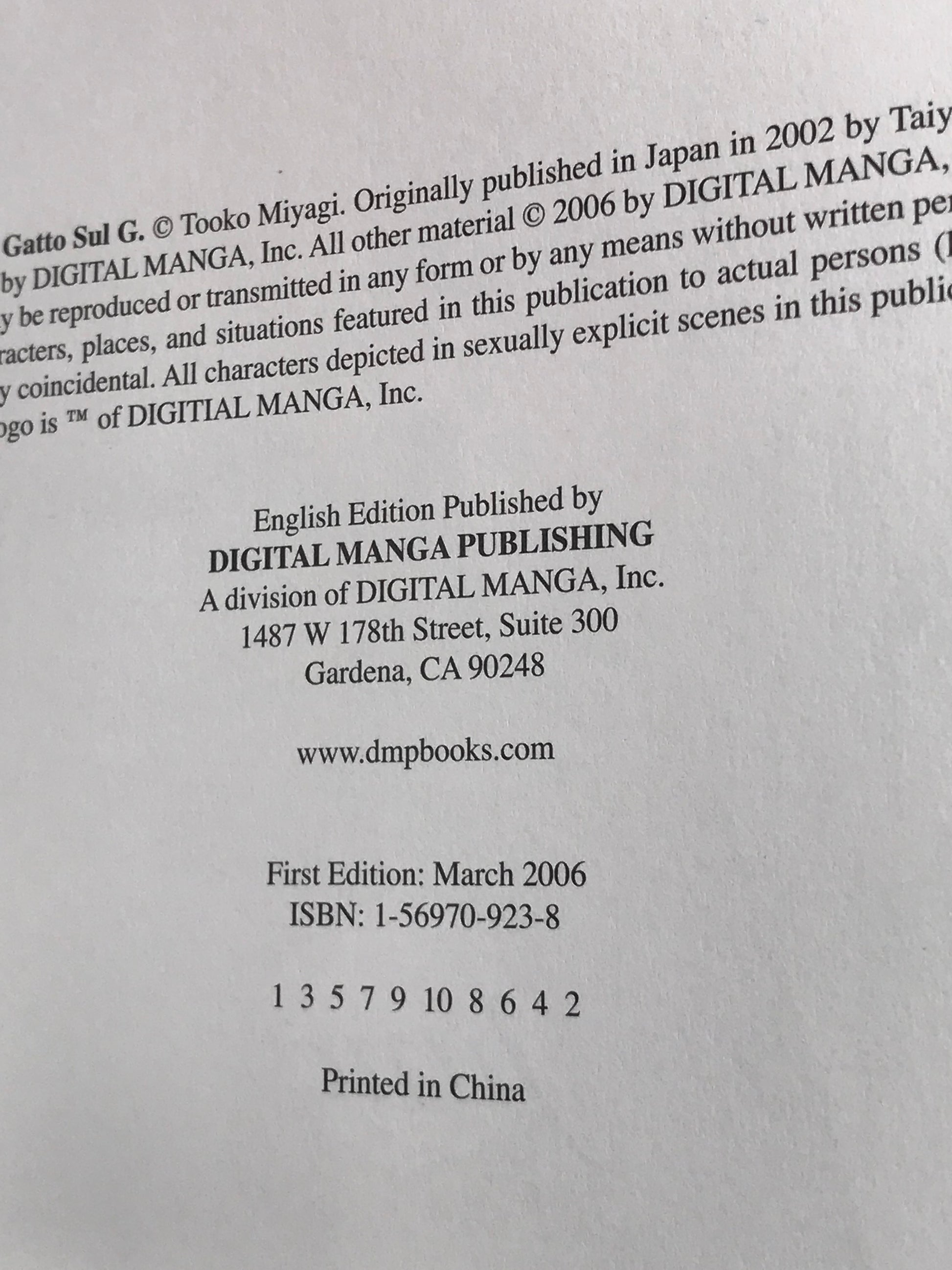 Il Gatto Sul G Vol. 1 DMP Manga Paperback English Miyagi M01