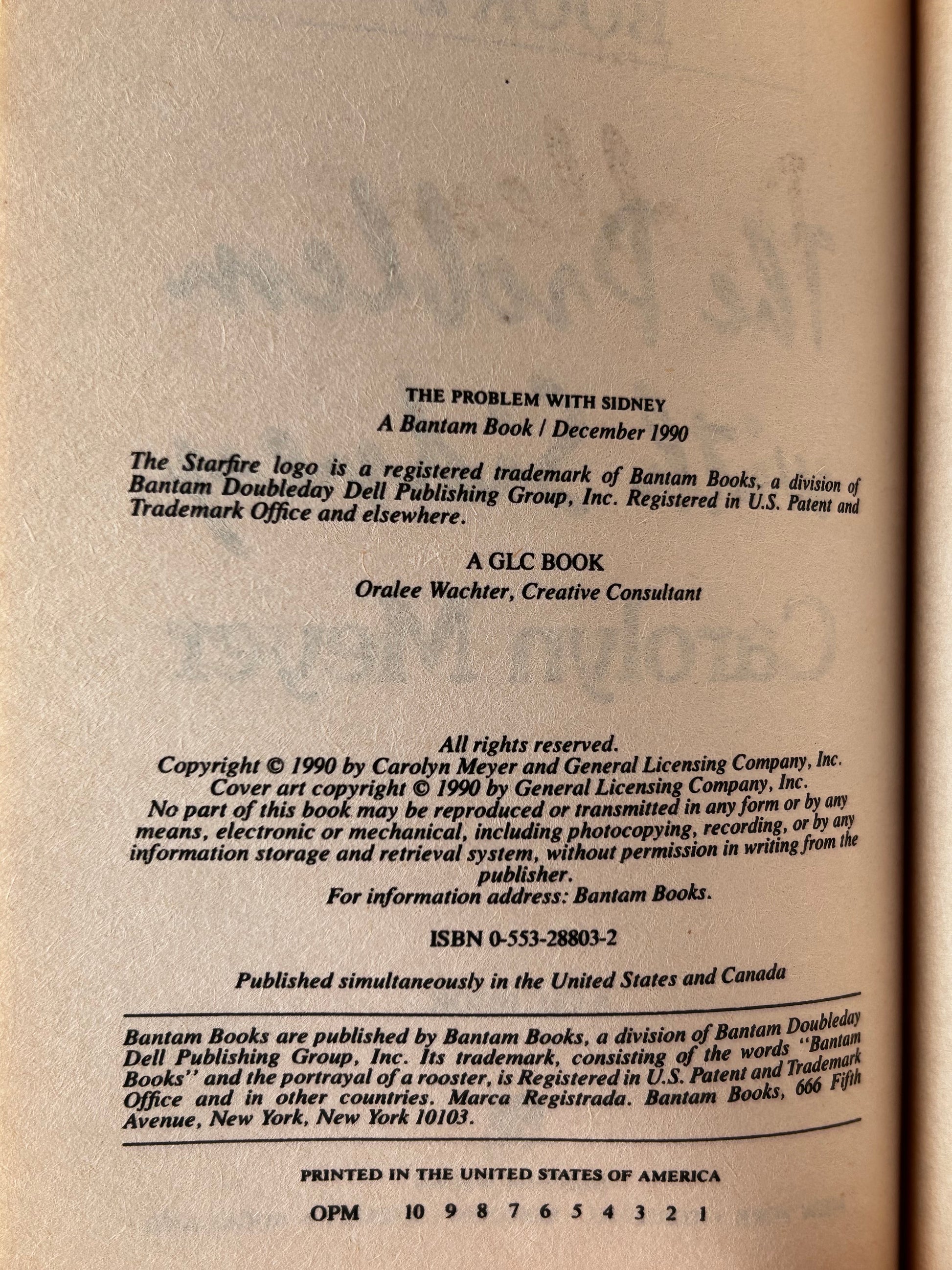 Problem With Sydney: Hotline Series BANTAM Paperback Carolyn Meyer SF12